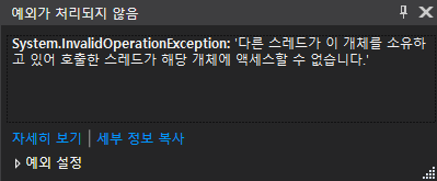 다른 스레드가 이 개체를 소유하고 있어 호출한 스레드가 해당 개체에 액세스할 수 없습니다.